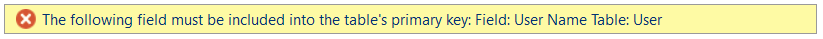 The following field must be included into the table’s primary key: Field User Name Table: User