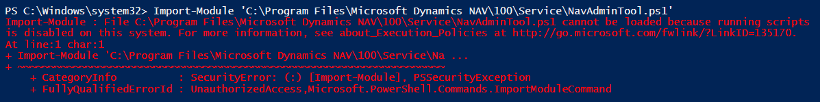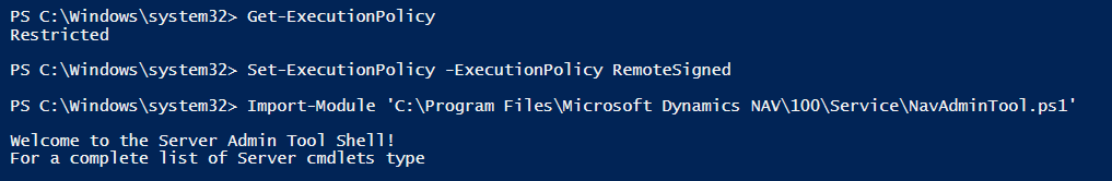 Import-Module 'C:\Program Files\Microsoft Dynamics NAV\110\Service\NAVAdminTool.ps1'