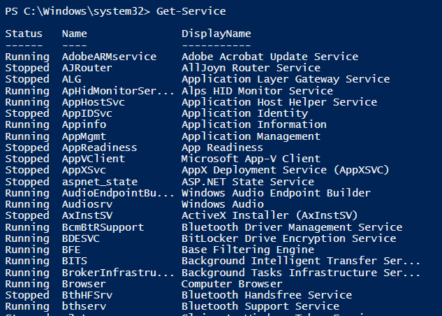 PS C:\Windows\System32>Get-Service