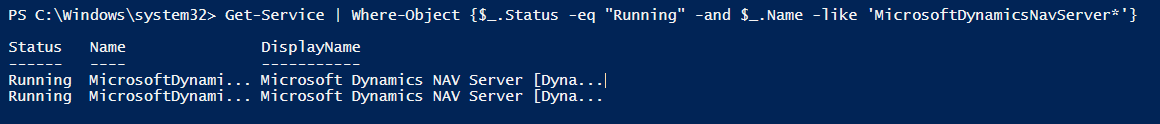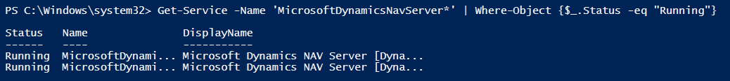 Get running NAV services with Get-Service and Where-Object