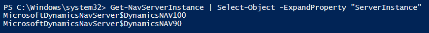We can however pipe the output into the Select-Object Cmdlet which we can use to get the service names as string objects: PS C:\Windows\system32> Get-NavServerInstance | Select-Object -ExpandProperty "ServerInstance"